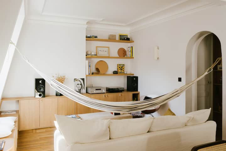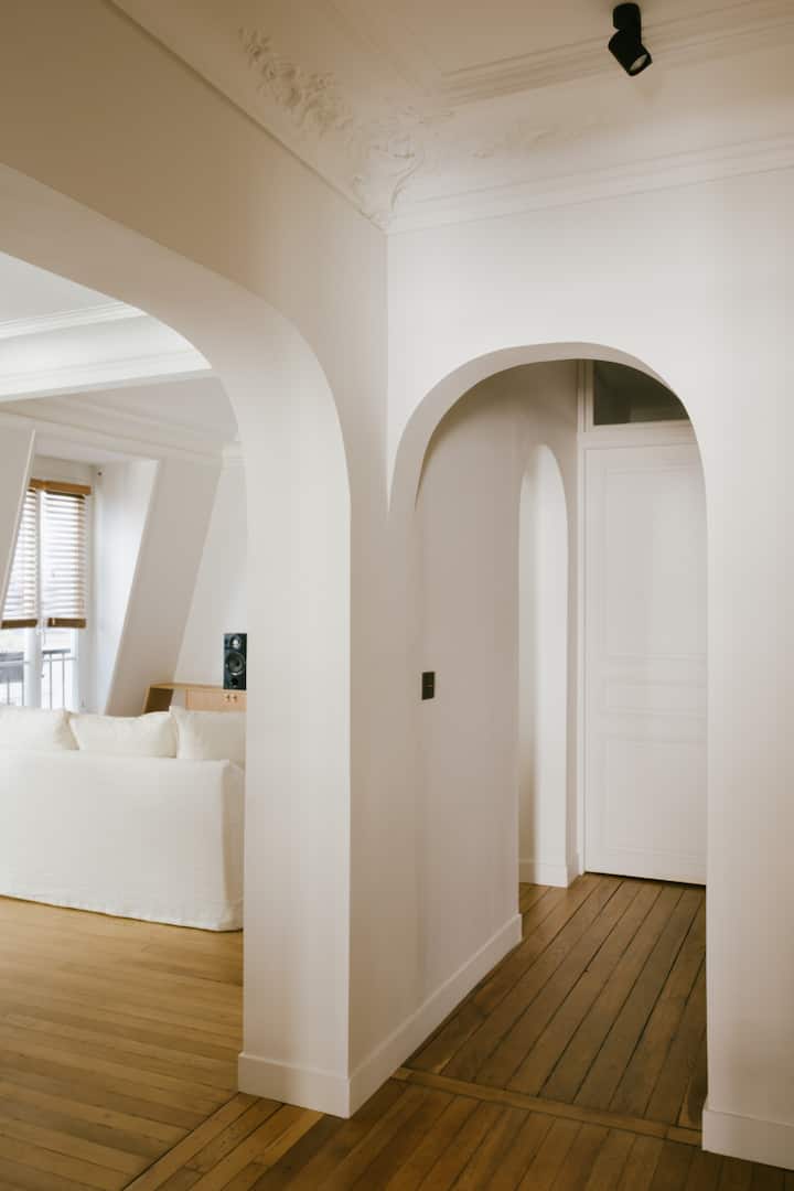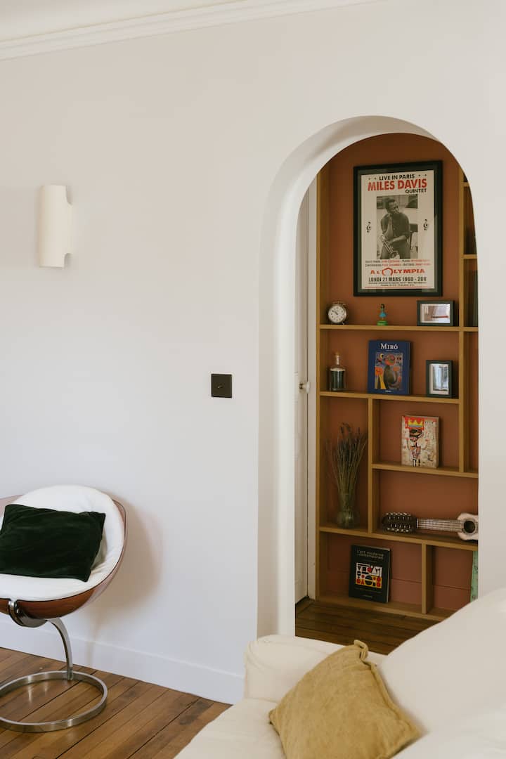 არქიტექტორის „მყუდრო“ ბინა პარიზის გულში, სენ‑მარტენის არხთან