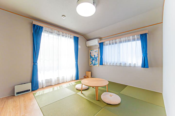 4 საძინებლით, 8 საწოლითა და 1,5 სააბაზანოთი, მათ შორის, იაპონური სტილის ოთახით, ოჯახებსა და მეგობრების ჯგუფებს შეუძლიათ კომფორტულად დარჩენა.