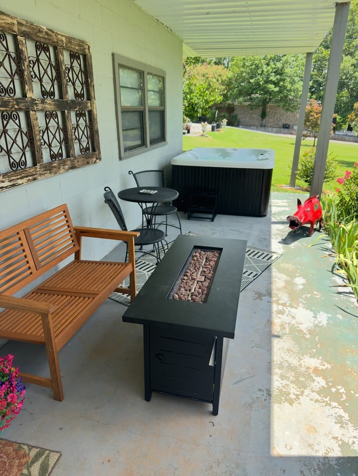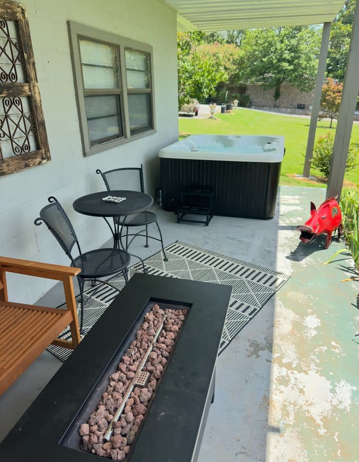 ტაილერის ტბის ხედით დასასვენებელი საცხოვრებელი — ჰიდრომასაჟიანი აუზი და კოცონის დასანთები ადგილი