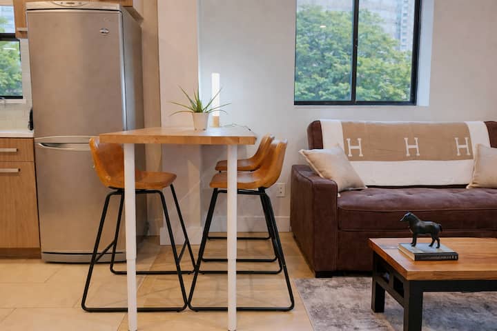 ახლადგარემონტებული თანამედროვე 1-საძინებლიანი ბინა, რომელშიც არის სამრეცხაო