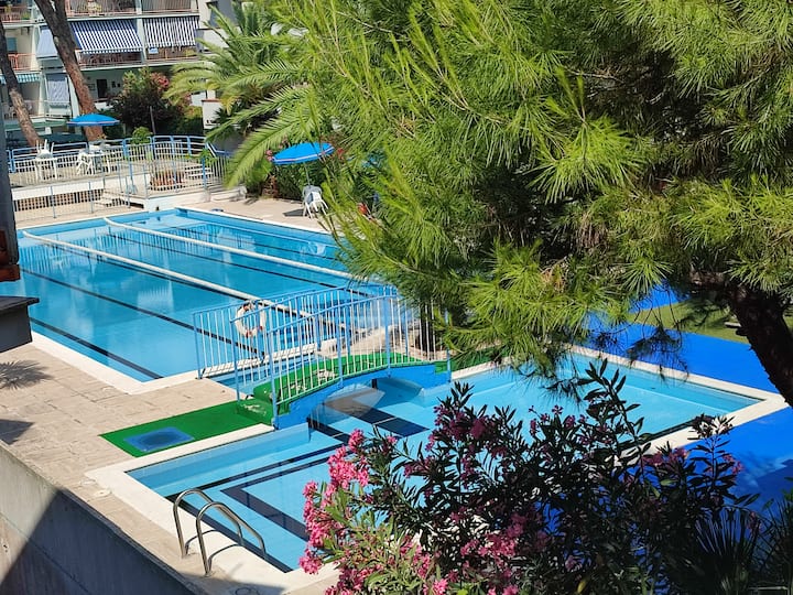 Ბინა, დაახლოებით 60 კვადრატული მეტრი და მდებარეობს მეორე სართულზე ლიფტის გარეშე, კეთილმოწყობილია ყველა დეტალის მიმართ ყურადღებით და იტევს მაქსიმუმ 6 ადამიანს. Ის მოიცავს საცხოვრებელ სივრცეს, რომელიც აღჭურვილია გასრიალებული გასაშლელი დივნით, ტელევიზორით, წრიული მაგიდით ფრანგული კარით, რომლიდანაც წვდომა აქვს დიდ აივანზე, რომელიც ფიჭვნარსა და კონდომინიუმის აუზს გადაჰყურებს. Ცალკე საპარკინგე ადგილი.