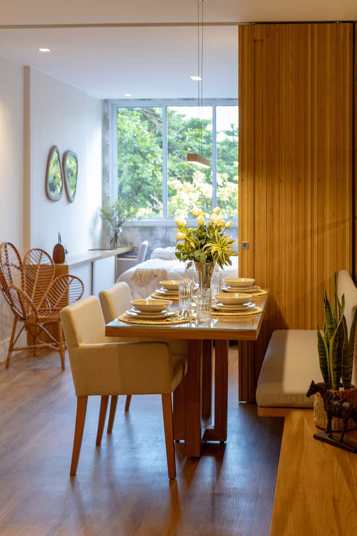 Დეკორისა და ოთახების მშვიდი ატმოსფეროს დეტალების ხაზგასმა. Შემოთავაზება აერთიანებს პრაქტიკულობასა და სტილს მათთვის, ვისაც რიოში უნიკალური საცხოვრებელი სურს, იდეალურია როგორც ტურიზმისთვის, ისე საქმიანი მოგზაურობისთვის.