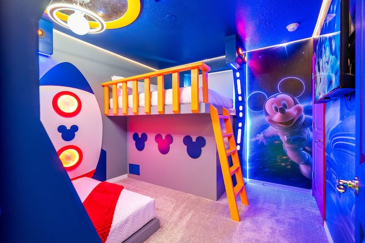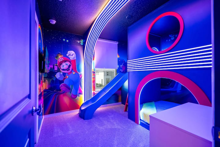 Დაისვენეთ ამ განსაცვიფრებელ 5-საძინებლიან უინძორ-კეიში, რომელიც დაუვიწყარი ოჯახური გართობისთვისაა განკუთვნილი. Გაისეირნეთ კერძო აუზთან, დაისვენეთ ფართო თანამედროვე ინტერიერში ან დაათვალიერეთ ეპიკური თემატური სათამაშო ოთახი საჰაერო ჰოკეის, არკადული თამაშებისა და Xbox-ის თანხლებით. Ორი ფერადი ორსართულიანი ოთახი - გალერეა და Super Mario-spark საბავშვო წარმოდგენები, ხოლო ზრდასრულები განიტვირთებიან პლუშის მეფისა და დედოფლის ფლიგელებში. Საკურორტო საყოფაცხოვრებო პირობებით, სწრაფი Wi-Fi ქსელით, ჭკვიანი ტელევიზორებითა და იდეალური მდებარეობით დისნეიდან რამდენიმე წუთის სავალზე!