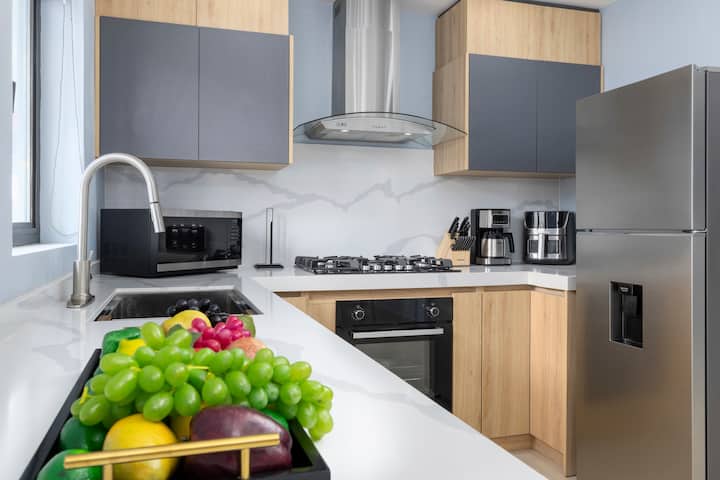 Სრულად აღჭურვილი სამზარეულო შექმნილია როგორც ფუნქციონალურობის, ისე სტილის გათვალისწინებით, გულუხვი კარადებით, რომლებიც აღჭურვილია ყველა საჭირო ნივთით თქვენი ოჯახის საყვარელი კერძების მოსამზადებლად. Ფართო სამუშაო ზედაპირები იდეალური პირობაა მოსამზადებლად, მოსამზადებლად ან, უბრალოდ, საჭმლის მოსამზადებლად და კულინარიული შთაბეჭდილებების დასაგემოვნებლად.