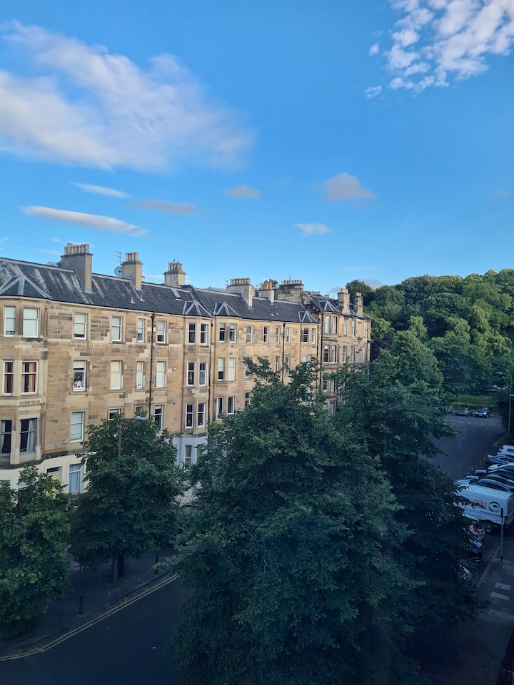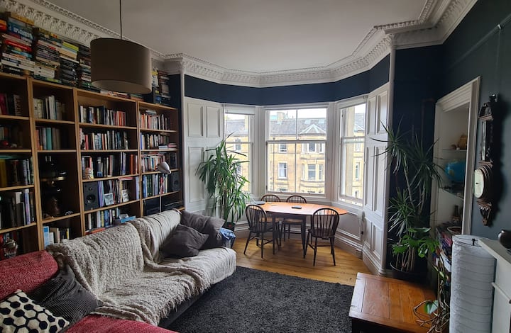 Თბილი და სტუმართმოყვარე მე-3 სართულის ტრადიციული ბინა ედინბურგის ცენტრალურ გარეუბანში, ჰილსაიდზე.