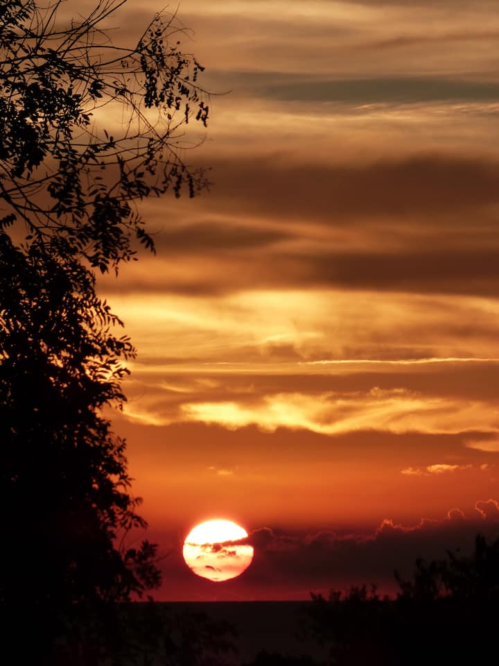მიყვარს დილის ვარჯიში მზის ამოსვლის ფონზე