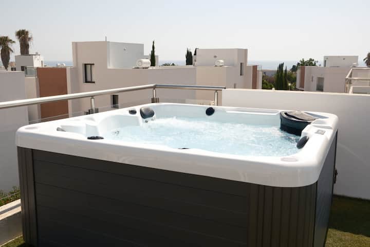 Მყუდრო ვილა სახურავზე ჰიდრომასაჟიანი აუზითა და ზღვის ხედით