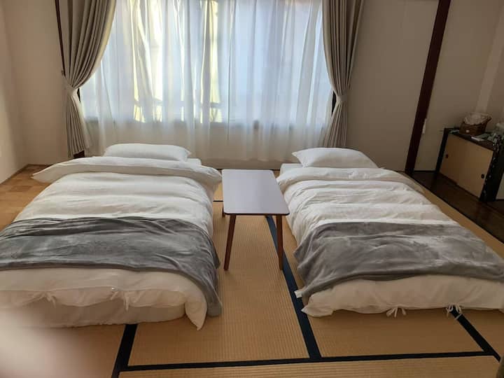 Ეს 8 ‑ ტატამი ‑ მატიანი იაპონური სტილის ოთახი იდეალურია მხოლოდ ოთახებისთვის და ფეხით 5 წუთის სავალზეა შუზენჯის სადგურიდან.
