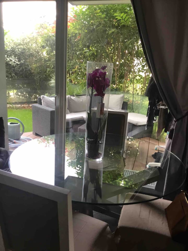 Მომხიბლავი ბინა ბაღით