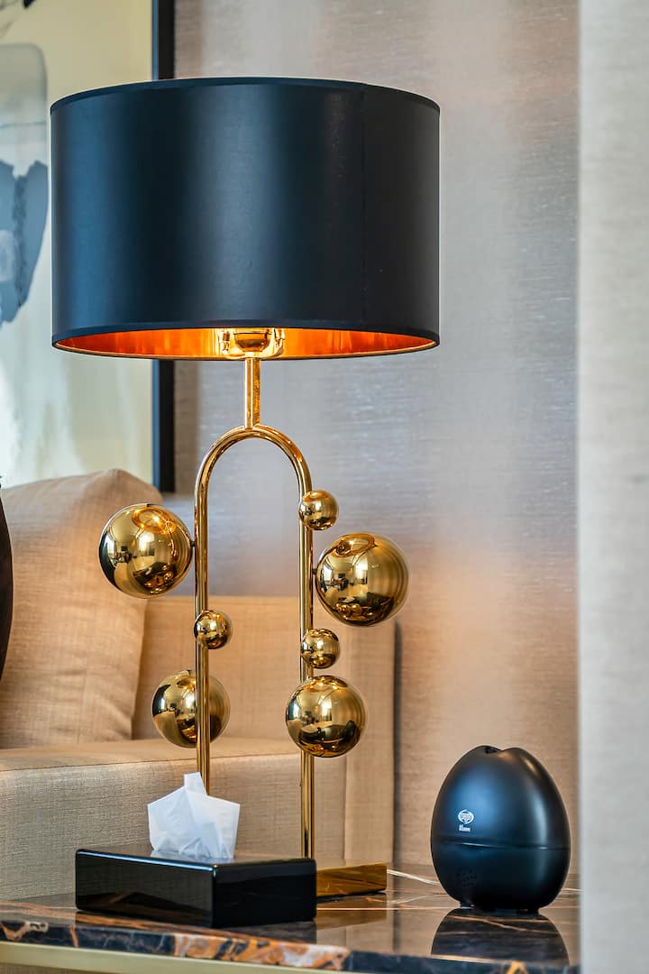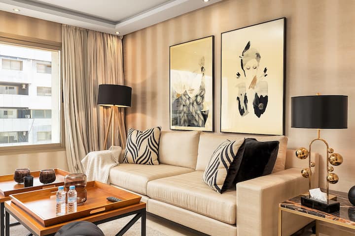 შავი და ოქროსფერი — თანამედროვე ლუქსი ქალაქის ცენტრში - 2BD