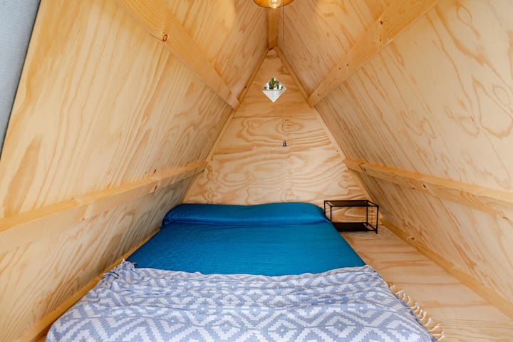 Მინი ხის კარავი ორადგილიანი ლეიბით