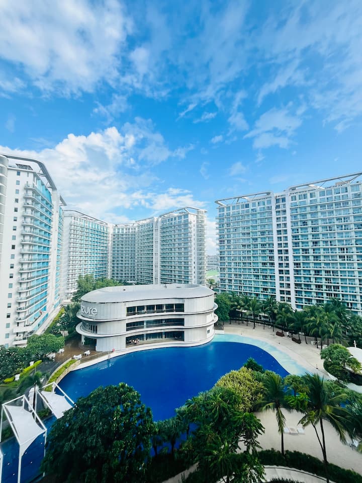 Კეთილი იყოს თქვენი მობრძანება ჩვენს ფართო 2BR ბინაში სენტ-ტროპეში 1015B, რომელიც იდეალურია 4–6 სტუმრისთვის და 1 ბავშვისთვის! Ისარგებლეთ პლაჟისა და აუზის სრული ხედით, 22-საათიანი სტუმრობით და უფასო წვდომით Wi ‑ Fi ქსელზე, Netflix ‑ ზე, კარაოკეზე, ბილიარდზე, სათამაშო კონსოლზე, სამზარეულოზე და არა მხოლოდ. Შესანიშნავია ოჯახის წევრებისთვის, მეგობრებისთვის ან განსაკუთრებული დღესასწაულებისთვის. Მდებარეობს Azure Urban Resort ‑ ში, პლაჟით, ტალღის აუზით, სახურავის ტერასით, რესტავრაციითა და სხვა ობიექტებით. NAIA ‑ დან სულ რაღაც 30 წუთის სავალზე! Დაჯავშნეთ ახლავე, რომ სახალისო და კომფორტული დასვენება გქონდეთ!