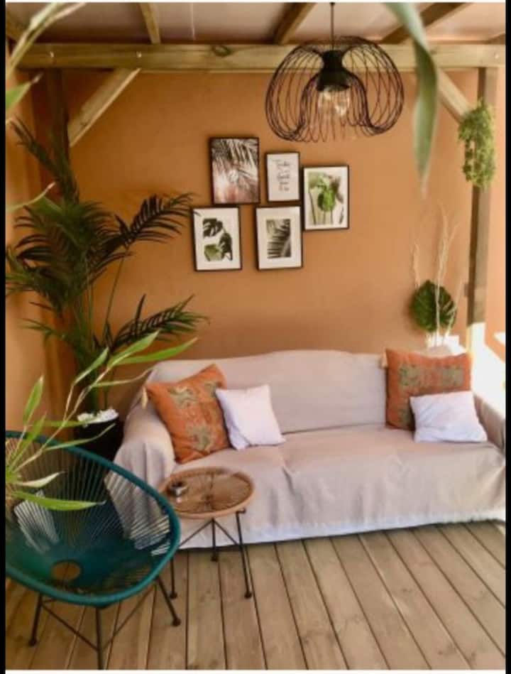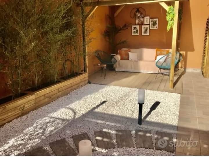 Მომხიბლავი სტუდიოს ტიპის ბინა ბაღით