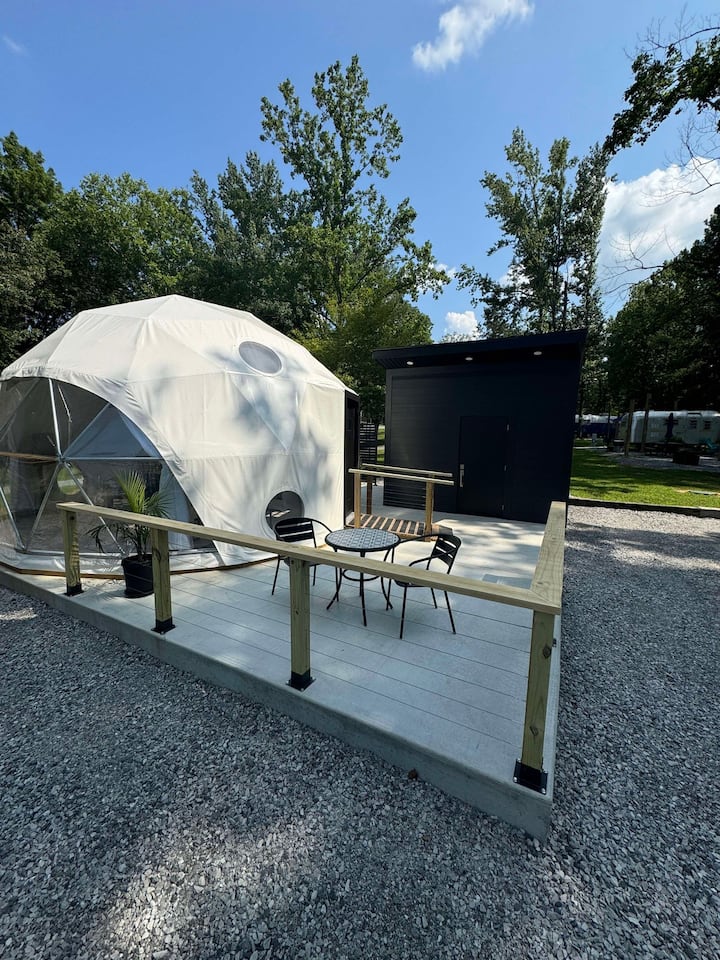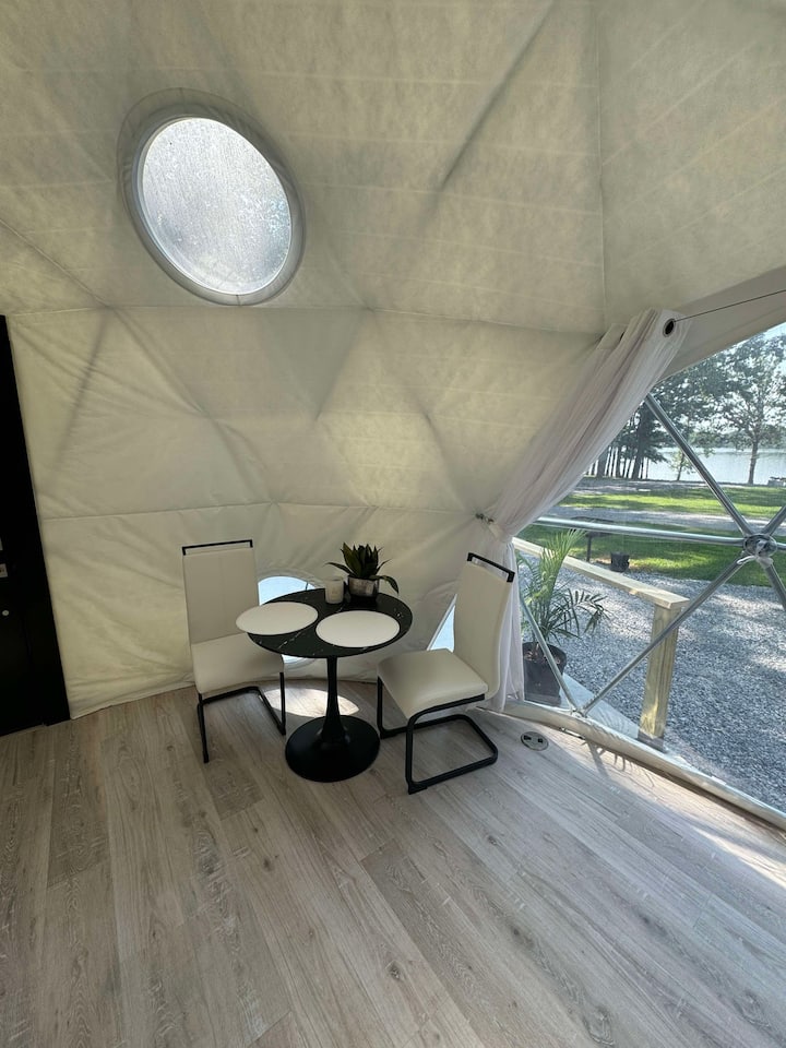Კეთილი იყოს თქვენი მობრძანება ლეიკვიუს გუმბათში. Ჩვენი მეორე გეოდეზიური გუმბათი საკუთრებაშია. ის დაემატა მყუდრო და დასასვენებელი ტბისპირა საცხოვრებლის შესაქმნელად. Ამ ბინაში განთავსდება 2 ადამიანი. Ადაპტირებულია ADA ‑ ს მეშვეობით.