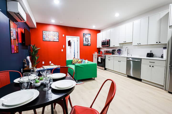Ჩაერთეთ Marvel Land-ში ამ მყუდრო 1Br ბინაში! Ისტ-პარკსაიდში მდებარე ეს კლასიკური ძვირფასი ქვა განტვირთვისა და აღმოსაჩენად გიწვევთ. Განიტვირთეთ Queen Bed ‑ ში, ქალაქის ენერგიით გაჟღენთილი დღის შემდეგ. Მოამზადეთ უგემრიელესი კერძები სრულად აღჭურვილ სამზარეულოში, შემდეგ კი შეიკრიბეთ ღია მისაღებ სივრცეში და ისიამოვნეთ ფილმების ღამეებით სმარტ-ტელევიზორში.