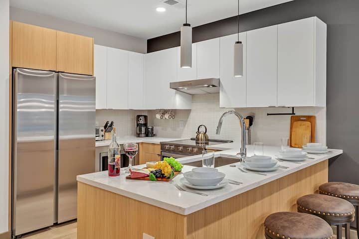 „საუთერნ‑კომფორტი“ ნეშვილის ყველაზე საინტერესო უბნების გულში მდებარეობს. რამდენიმე ნაბიჯის მოშორებით SOBRO‑ს ცოცხალი მუსიკა და ღამის ენერგია გელოდებათ, ასევე, The Gulch‑ის ბარები სახურავზე და მაღალი კლასის რესტორნები. გაემართეთ ბროდვეისკენ, სადაც ბარები და ნეონის ნათება გელოდებათ, შემდეგ კი დაბრუნდით სახლში, რომ დაისვენოთ მყუდრო მისაღებ ოთახში, რომელიც უზრუნველყოფილია რბილი ავეჯითა და სმარტ‑ტელევიზორით. სამზარეულო დილას მარტივად გაგიმარტივებთ საქმეებს, საღამოებს კი სასიამოვნოდ აქცევს — ის კომფორტული, ელეგანტური სივრცეა, სადაც ენერგიას აიღებთ.