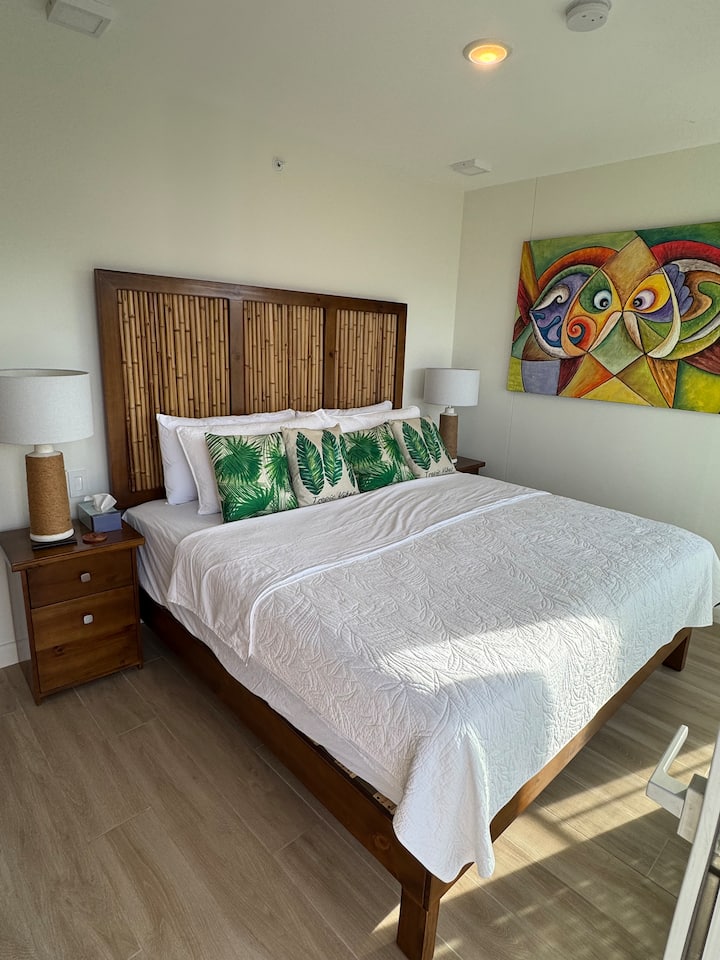 Საწოლი დიდი ზომის, ოკეანის ხედით საწოლში ყოფნისას.