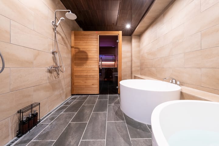 (თეთრი) დიდი აბაზანა საუნით! პარკინგი უფასოა/12 საწოლი/5 საძინებელი/3 სააბაზანო
