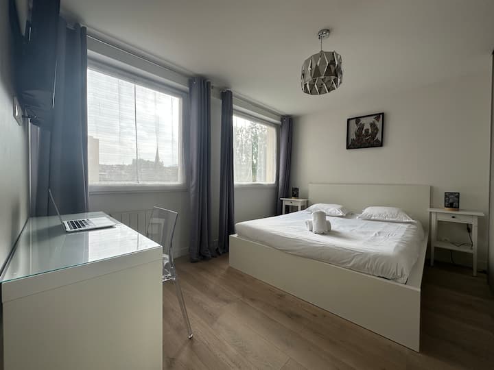 Ეძებთ კომფორტულ, ცენტრალურ სივრცეს ცალკე პარკირების ადგილით? Ეს ბინა, რომელიც ქალაქის ისტორიული შუაგულიდან ფეხით 10 წუთის სავალზე მდებარეობს, გთავაზობთ მარტივ წვდომას ყველა მაღაზიაში, რესტორანსა და კულტურულ ობიექტზე. Ისიამოვნეთ ხარისხიანი თეთრეულით, სრული საყოფაცხოვრებო პირობებითა და თქვენი კეთილდღეობისთვის განკუთვნილი ნათელი სივრცით. Საზოგადოებრივი ტრანსპორტი ახლოსაა, რაც ყველა მოგზაურობას მარტივსა და სწრაფს ხდის. Ამას გარდა, ქალაქის პანორამული ხედებით დატკბებით.