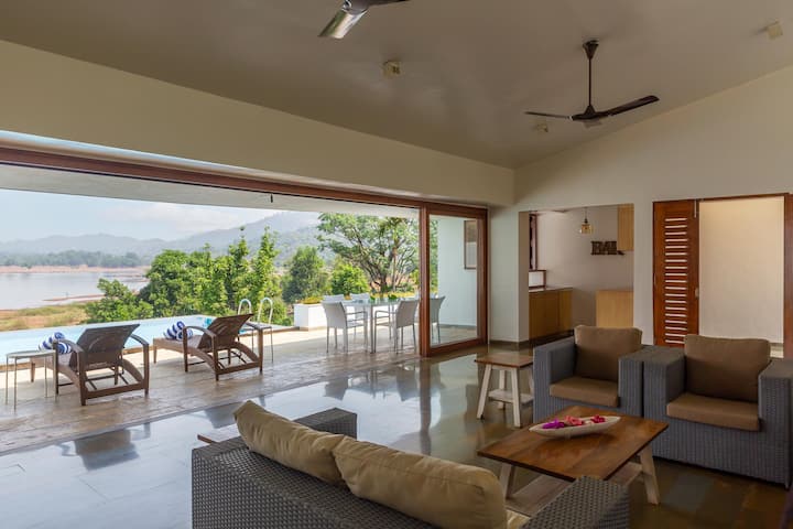 Ეს კერძო 3BHK ტბისპირა სახლი ღია, ჰაეროვან ინტერიერს ერწყმის სოფლის, თუმცა თანამედროვე ხიბლით. Დიდი ფანჯრებიდან მრავლადაა ბუნებრივი სინათლე და მულშის ტბის თვალწარმტაცი ხედები.