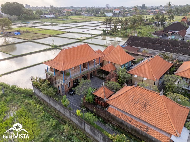 Შეაბიჯეთ ტროპიკული სამოთხის ნაჭერს ამ მომხიბვლელ ხის ვილაში, სუკავატის შუაგულში. Bukit Vista-ს მიერ მართული ეს დამალული ძვირფასი ქვა აერთიანებს ტრადიციულ ბალიანურ არქიტექტურას და თანამედროვე კომფორტს. Გაიღვიძეთ ფრანგიპანის ნაზი სურნელით, დატკბით დილის ცურვით ბროლის ლურჯ აუზში და დატკბით მშვიდი ატმოსფეროთი ბალის ცოცხალი კულტურისა და ხელოსნების ბაზრებიდან რამდენიმე წუთში.