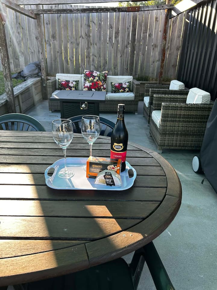 - დასასვენებლად დასაქირავებელი საცხოვრებლები გარე დასაჯდომი ადგილებით: უაიკატო