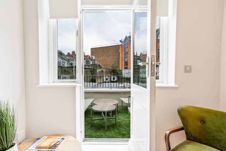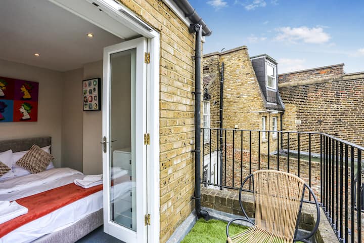- დასასვენებლად დასაქირავებელი საცხოვრებლები გარე დასაჯდომი ადგილებით: ლონდონი
