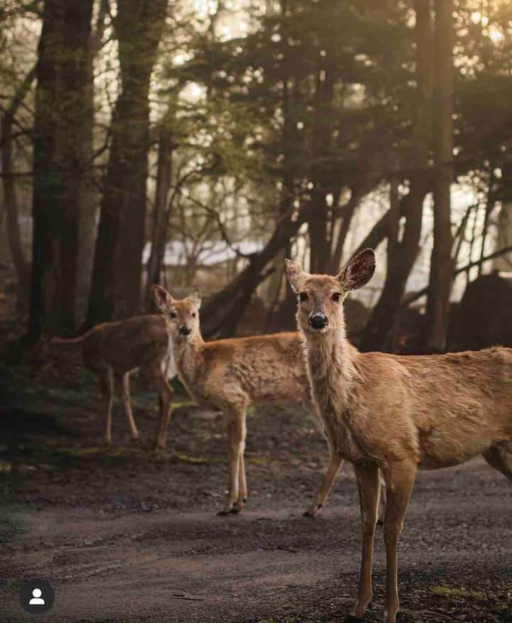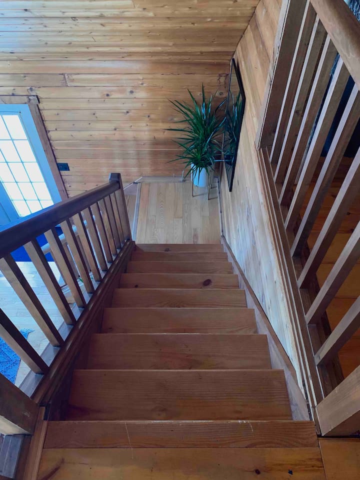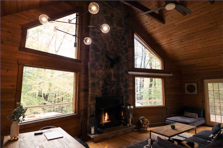Შალეს დაპატიჟება თანამედროვე/ურბანული ირონიით. Ფართო მისაღები ოთახი შეშის ცეცხლით. Ჩვენი მისაღები ოთახი და ლოფტის სივრცე სუფთა კედარის ხისგანაა დამზადებული. Ხის სახლის სიმყუდროვეს შეიგრძნობთ, საიდანაც ტყის პირადი ხედი იშლება. Ამას გარდა, შეგიძლიათ მოკლე ლაშქრობა ხის სახლის უკანა მხარეს. Გაითვალისწინეთ დათვები, მგლები და სხვა გარეული ცხოველები. Მიუხედავად იმისა, რომ ჩვენ გვაქვს უამრავი ხე ჩვენს საკუთრებაში, გთხოვთ გაითვალისწინოთ, რომ ჩვენ გვყავს მეზობლები ახლოს!