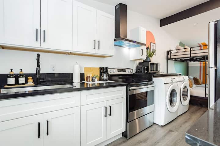 ★ სრულად აღჭურვილი: უჟანგავი სამზარეულო და სრულზომიანი სარეცხი/საშრობი