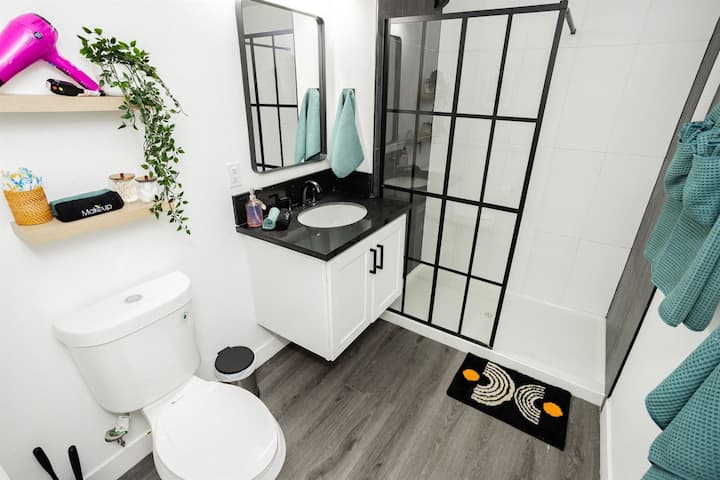 🛁სუფთა სააბაზანო: ჩვენი სააბაზანო არის ნათელი, სპა‑სავარჯიშო ადგილი, რომელიც განკუთვნილია განახლებისა და დატენისთვის.