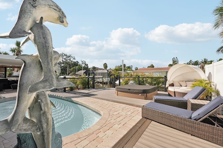 Ლუქს ‑ კლასის სახლი პრაიმ ‑ ლოკაციაში, სიესტა ‑ კეი-ვილიჯში. Ნაბიჯები პლაჟამდე/ბარებამდე/მაღაზიებამდე/რესტორნებამდე. Არხის მდებარეობა. ყველა სათამაშო - კაიაკები, საპსერფინგი. გათბობილი/დახურული გარე პატიო/სამზარეულო ბარბექიუთი
