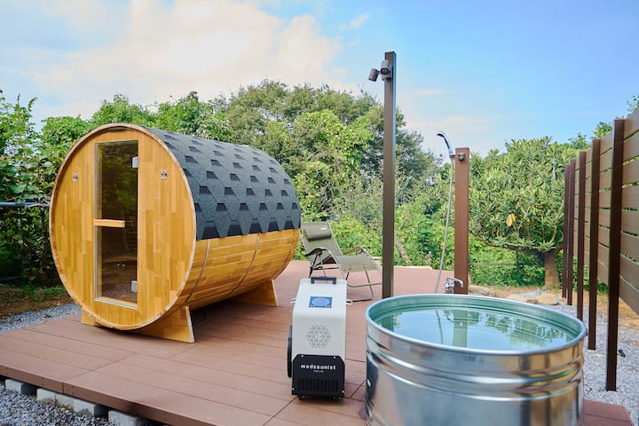 გარე საშხაპე და საუნა დასვენებაში შეგიწყობთ ხელს.