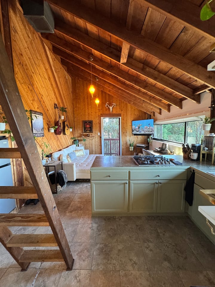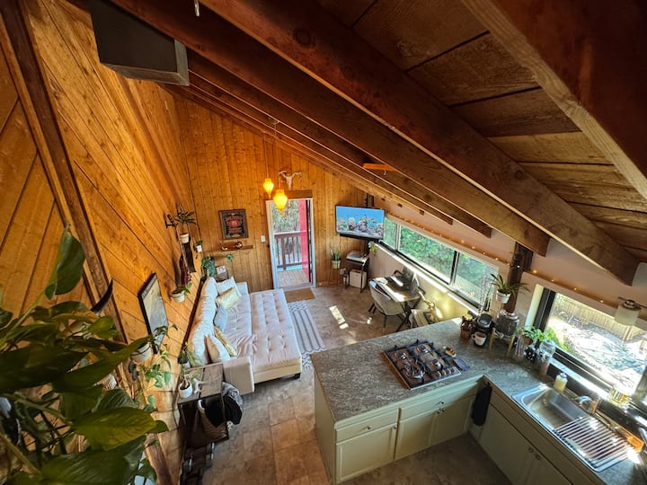 Ოუშენის ხედით ხის სახლის ლოფტი