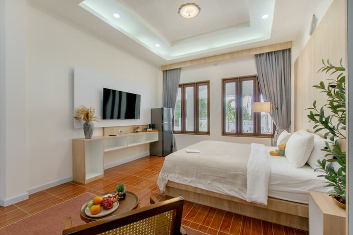 გრან‑დელუქსი ორადგილიანი საწოლით და ბაღის ხედით