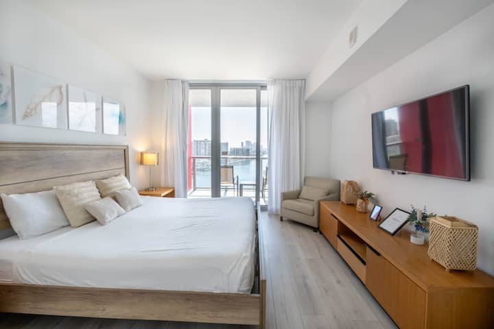 Მას აქვს დიდი აივანი სკამებით, რომლებიც გიწვევთ მაიამიში სტუმრობისთვის.
