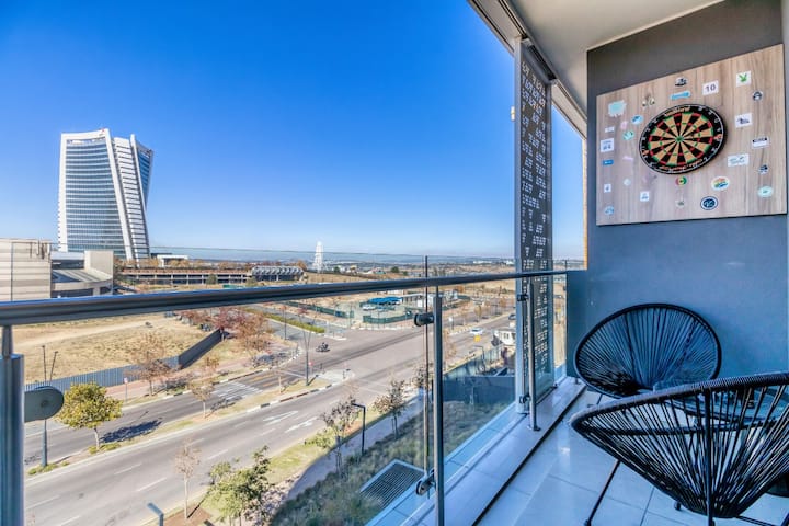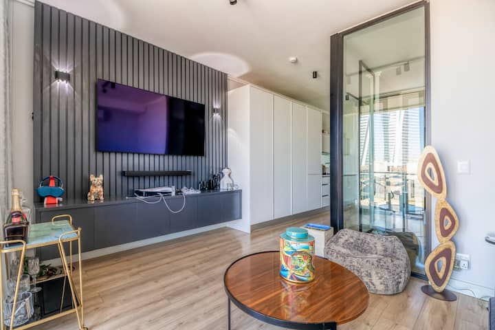 Თანამედროვე საბაკალავრო აპარტამენტი და განსაცვიფრებელი ხედი აუზსა და სპორტდარბაზზე
