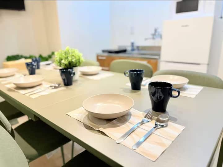 უახლოესი სადგური 7 წუთის სავალზეა! 4 და 5 სართულზე მდებარე, სულ 82.25 კვ.მ. + ლამაზი აივნით, იდეალურია ოჯახის/ჯგუფის მოგზაურობისთვის.