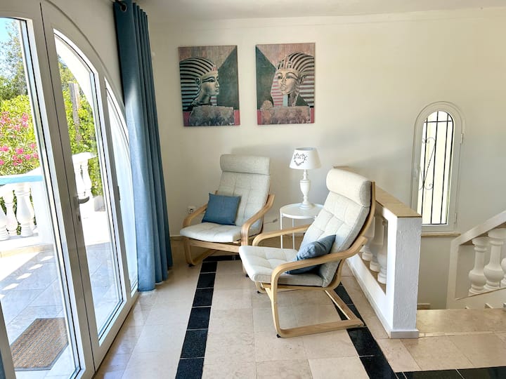 Ოლა! მე საბინი ვარ და ჩემს მეუღლესთან, ბრაიანთან, ერთად ახლახან ჩამოვედით პორტუგალიაში საცხოვრებლად ჩვენი მშობლიური ქვეყნიდან, ნიდერლანდებიდან. Ჩვენ ყოველთვის გვიყვარდა მოგზაურობა და ესპანეთიც და პორტუგალიაც ყოველთვის იპყრობდნენ ჩვენს ყურადღებას. Ახლა, როცა ჩვენმა სამმა ვაჟმა დამოუკიდებლად ცხოვრება დაიწყო (ნიდერლანდებში), ჩვენ გადავდგით ნაბიჯი, რომ გავაგრძელოთ ჩვენი ცხოვრების განვითარება ალგარვეში. ამისთვის სტუდიოებსა და ბინებს/ფლიგელებს ვთავაზობთ სტუმრებს. Მოგესალმებით ჩვენთან ერთად!