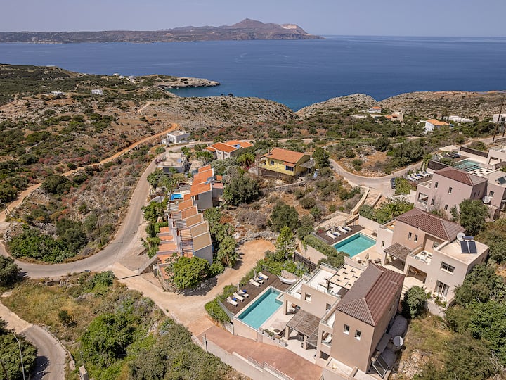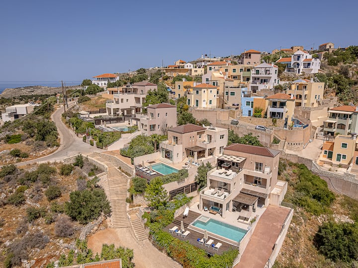 ყოველ ვილას აქვს საკუთარი საცურაო აუზი, შეზლონგები, დასასვენებელი კუთხეები, ღია ცის ქვეშ სადილობის ადგილები და ბარბექიუს აღჭურვილობა — იდეალური პირობები კრეტის მზით დასვენებისთვის დღისით, ხოლო ღამით — დაუვიწყარი მზის ჩასვლის დასათვალიერებლად.