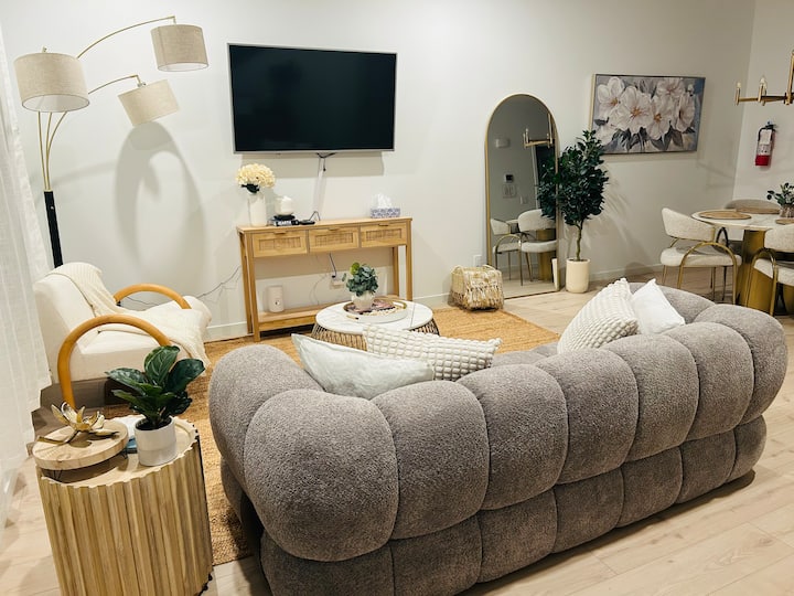 • 🛋️ მყუდრო მისაღები ოთახი — ქალაქის ან ახლომდებარე ბუნებრივი საოცრებების დათვალიერების შემდეგ მოეშვით და დატკბით კომფორტით Smart TV‑ს ყურებით.