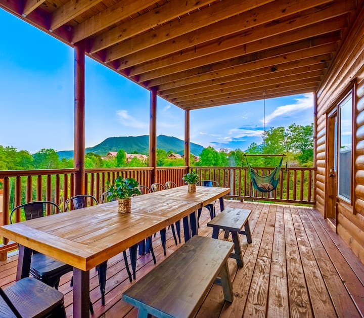 Გასაოცარია მილიონ დოლარიანი ხის სახლი! Მდებარეობს სასურველ ადგილას For by Grace 2 with/ your own in Cabin Heated Private Indoor Pool. Მზის ჩასვლის არაჩვეულებრივი ხედები. დიდი თეატრალური ოთახი/სათამაშო ოთახი შესანიშნავი ჯდომით, განიტვირთეთ აივანზე ან ჰიდრომასაჟის აუზში ან გაისეირნეთ ხის სახლის ცალკე გათბობის აუზში.