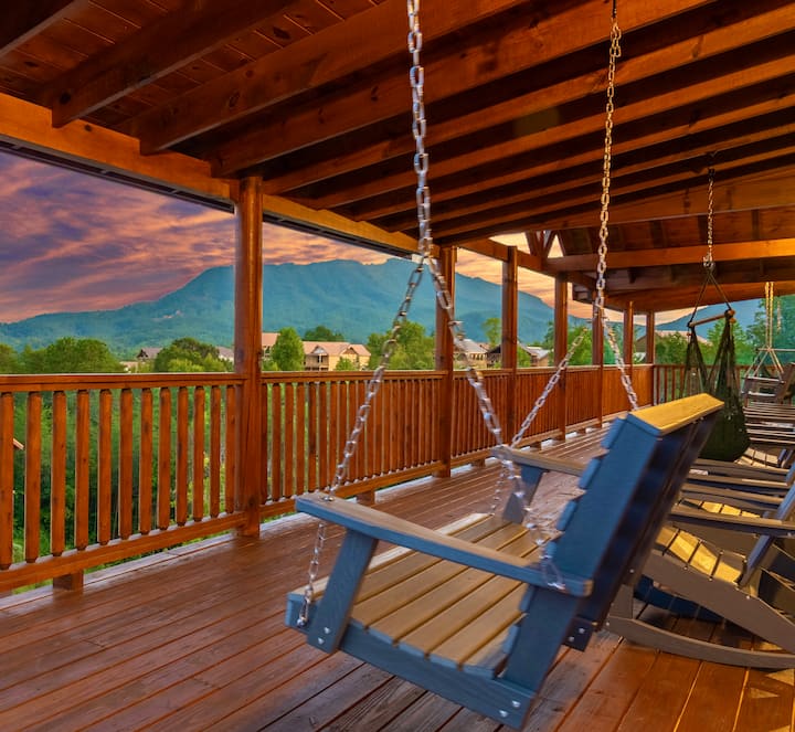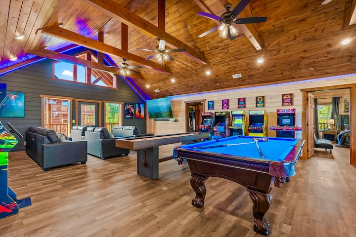 Გასაოცარია მილიონ დოლარიანი ხის სახლი! Მდებარეობს სასურველ ადგილას For by Grace 2 with/ your own in Cabin Heated Private Indoor Pool. Მზის ჩასვლის არაჩვეულებრივი ხედები. დიდი თეატრალური ოთახი/სათამაშო ოთახი შესანიშნავი ჯდომით, განიტვირთეთ აივანზე ან ჰიდრომასაჟის აუზში ან გაისეირნეთ ხის სახლის ცალკე გასათბობ აუზში .საოცარი სათამაშო ოთახი არკადული აპარატებით და ახალი ბილიარდის მაგიდით