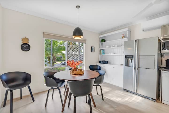 გაემგზურეთ კიუარა‑ბიჩზე, კომფორტულ საცხოვრებელში, რომელიც გარშემორტყმულია უხვი ბაღებითა და ცქრიალა ზღვის წყლის აუზით, რომელიც სანაპიროს ატმოსფეროს ამატებს. დახვეწილი დეკორი, კონდიცირებული ჰაერი, კეთილმოწყობილი სამზარეულო და დიდი გარე სივრცე იდეალურია სხვადასხვა შეკრებისთვის. ეს საცხოვრებელი მდებარეობს ჩრდილოეთ კუინსლენდში, პალმ‑კოვთან ახლოს, სადაც მარტივად იპოვით სხვადასხვა კვების ობიექტსა და სანაპიროს. აქ დასვენება შეგიძლიათ მშვიდად და კომფორტულად, იქნება ეს ოჯახურად თუ ჯგუფურად.