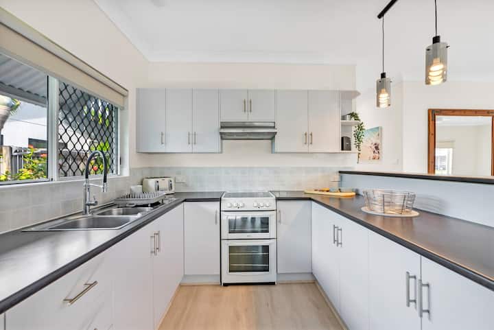 გაატარეთ დრო ტროპიკებში — ეს კომფორტული საცხოვრებელი კიუარა‑ბიჩზე მდებარეობს, გარშემორტყმულია გამწვანებული ბაღებით და იდეალურია მზიანი დღეებისთვის ჩრდილოეთ კუინსლენდში. ფართო სივრცე, სრულად აღჭურვილი სამზარეულო, სამი კომფორტული საძინებელი და შიდა სივრცის გარედან მარტივად მისასვლელი გეგმარება იდეალურია ოჯახებისა და ჯგუფებისთვის. მინერალიზებული წყლის აუზი და შშმ სტუმრებისთვის ადაპტირებული პირობები კიდევ უფრო მეტ კომფორტს გიქმნით. კიურა‑ბიჩიდან ფეხით სავალ მანძილზე, პალმ‑კოვიდან და სმიტფილდიდან კი რამდენიმე წუთის სავალზე მდებარე ეს მშვიდი საცხოვრებელი კომფორტს, სივრცესა და პრაქტიკულ საყოფაცხოვრებო პირობებს აერთიანებს, რაც უბრალო, სასიამოვნო სტუმრობას გაგიმარტივებთ.