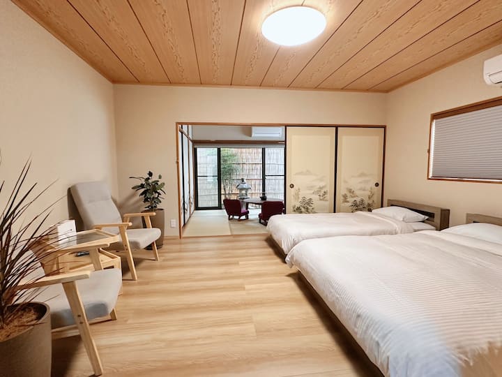 位於京都東山區五条和七条之間的問屋町通,這裡曾是江戶時代商賈雲集的傳統街區 ,交通四通八達。流淌着綿長風情的鴨川近在咫尺,入住這裡,您將體驗到周邊人文景観的獨特氛圍——這個寛敞舒適的和洋風格的房源設計有两間洋式卧室和一間日式傳統榻榻米和室, ,最多可以容納9位客人,厨房厨具一應俱全,起居室特别配置了大屏幕投影儀,不仅是您探索京都的歇脚之處,還將是您和同行親友放松身心的娱樂歡喜之所。