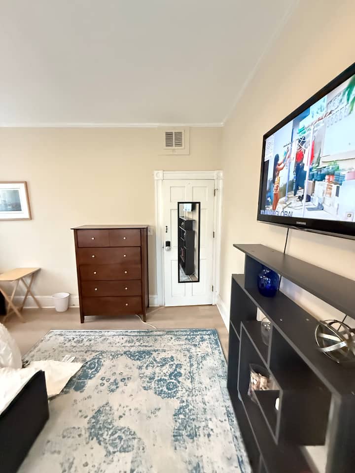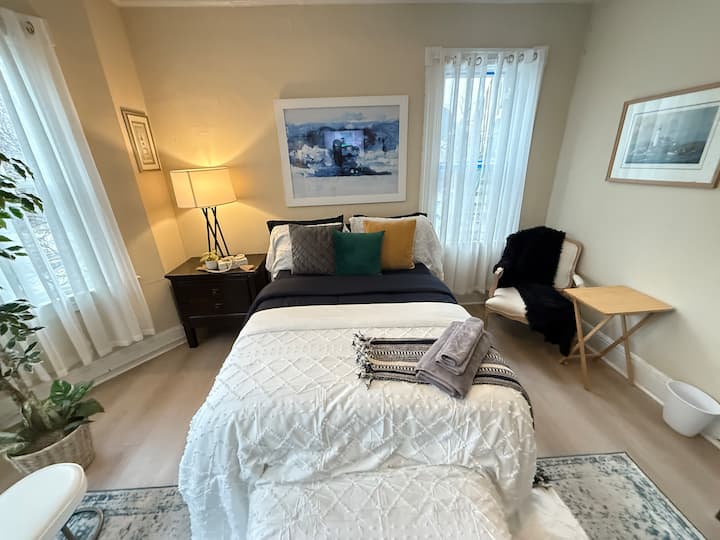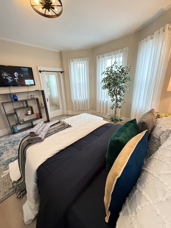 Იცხოვრეთ მყუდრო ტაუნჰაუსში, რომელიც მდებარეობს ბალტიმორში, კამდენ ‑ კროსინგში. Ოთახში არის ახლად დამზადებული სრული ზომის საწოლი ორმხრივი ჯუმბოს მატრასით, 4 ბალიში, 2 კომფორტი, 3 დეკორატიული პატარა ბალიში, კარადა, დიდი ფანჯარა და ჭკვიანი ტელევიზორი. Მშვიდი უბანი, ავტობუსის გაჩერებასთან ახლოს.