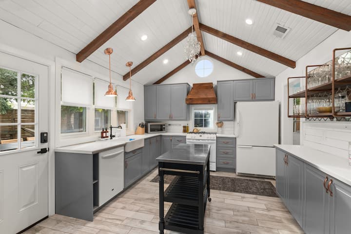 Სამზარეულო: ეს სრულად აღჭურვილი სამზარეულო შეფ-მზარეულის ოცნებაა, რომელშიც თავმოყრილია საჭმლის მოსამზადებლად და გასართობად აუცილებელი ყველა ნივთი. Მოამზადეთ თქვენი საყვარელი ყავა Keurig-ის აპარატით, დააგემოვნეთ სწრაფი წასახემსებელი გლუვი ტოსტერით ან ბლენდერის გამოყენებით ათქვიფეთ გლუვი კერძები. Ჩაიდანი მზადაა დილის ჩაისთვის ან საღამოს ლუდისთვის. Საკმარისი კონტრშეტევისა და თანამედროვე საყოფაცხოვრებო ტექნიკის მეშვეობით თავს ისე იგრძნობთ, როგორც საკუთარ სახლში. Ამას გარდა, ეზოსკენ იღება კარი, რომელიც იდეალურია ფრესკული კერძების დასაგემოვნებლად ან სუფთა ჰაერზე გასასვლელად.
