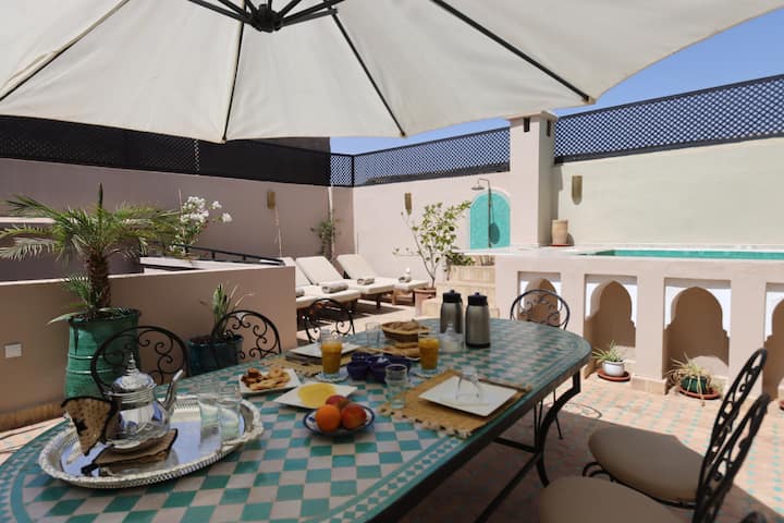 Მოდით და დატკბით უნიკალური და დასამახსოვრებელი შთაბეჭდილებით რიად-როზაში, სადაც ყველა დეტალი განკუთვნილია თქვენი კეთილდღეობისთვის მარაკეშში.
