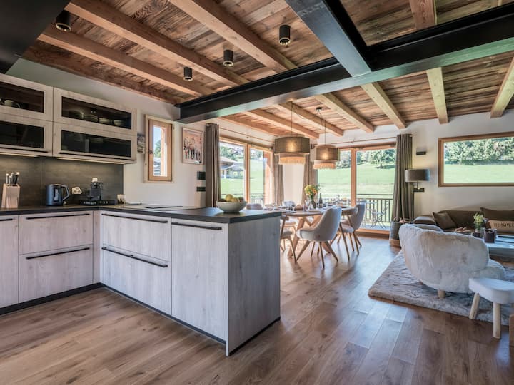Ეს 120 მ² -იანი შალე სამ დონეზეა გაშლილი. ეს საოჯახო შალე იშვიათ კომფორტს გთავაზობთ ევაიასიონ-მონ-ბლანის ტერიტორიის ფერდობებთან ახლოს.