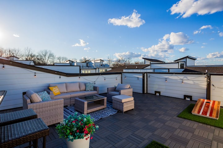 •დააბრუნეთ ვარსკვლავების ქვეშ, სახურავის ცალკე ტერასაზე, შეზლონგზე დასაჯდომი ადგილებითა და საცხოვრებლით, რომ განიტვირთოთ ქალაქში ერთი დღის გასვლის შემდეგ. Იდეალურია დილის ყავისთვის ან საღამოს კოქტეილებისთვის.
